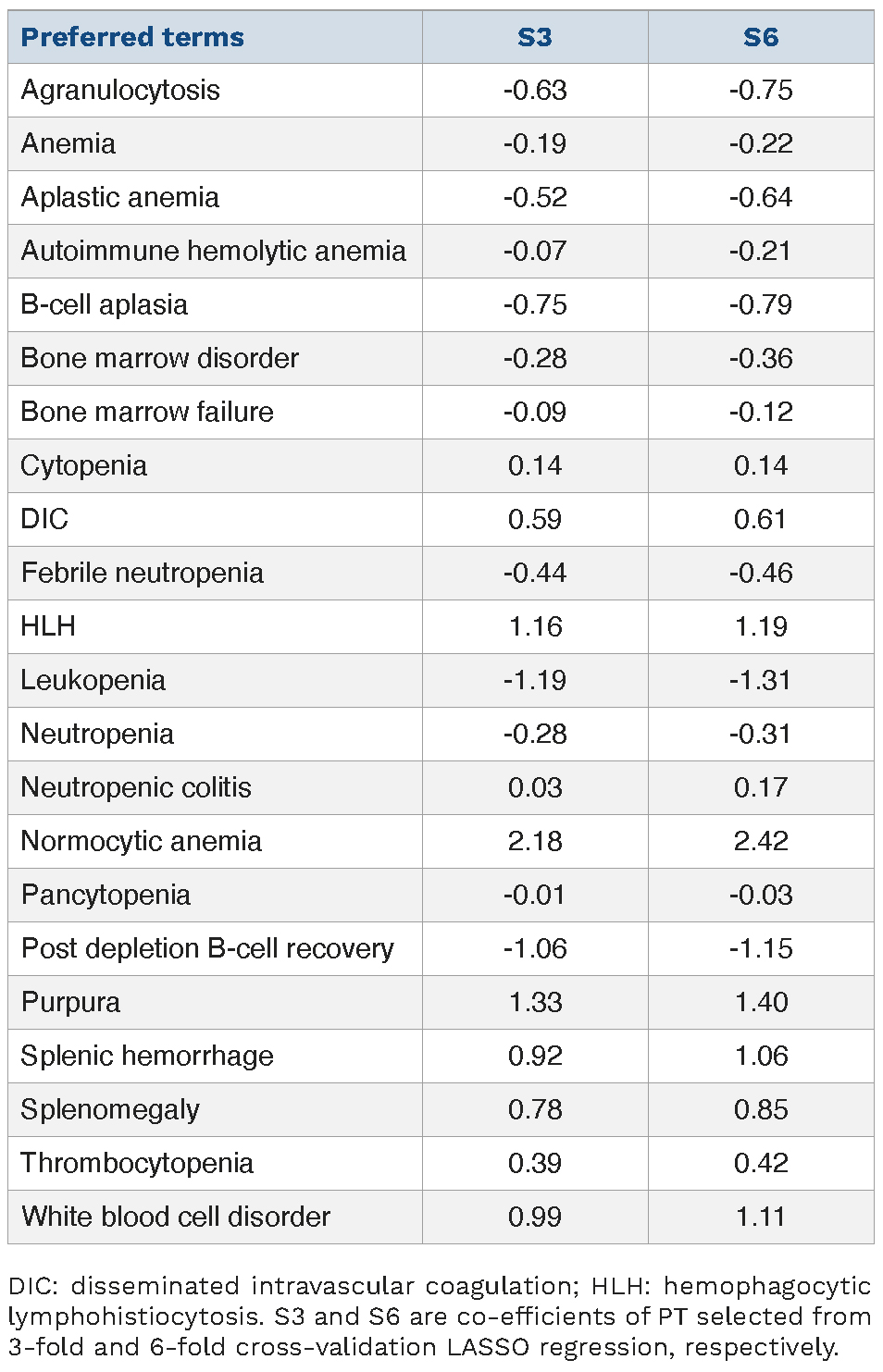 Table 3.Death-associated hematologic adverse events selected from K-fold cross-validation LASSO regression.