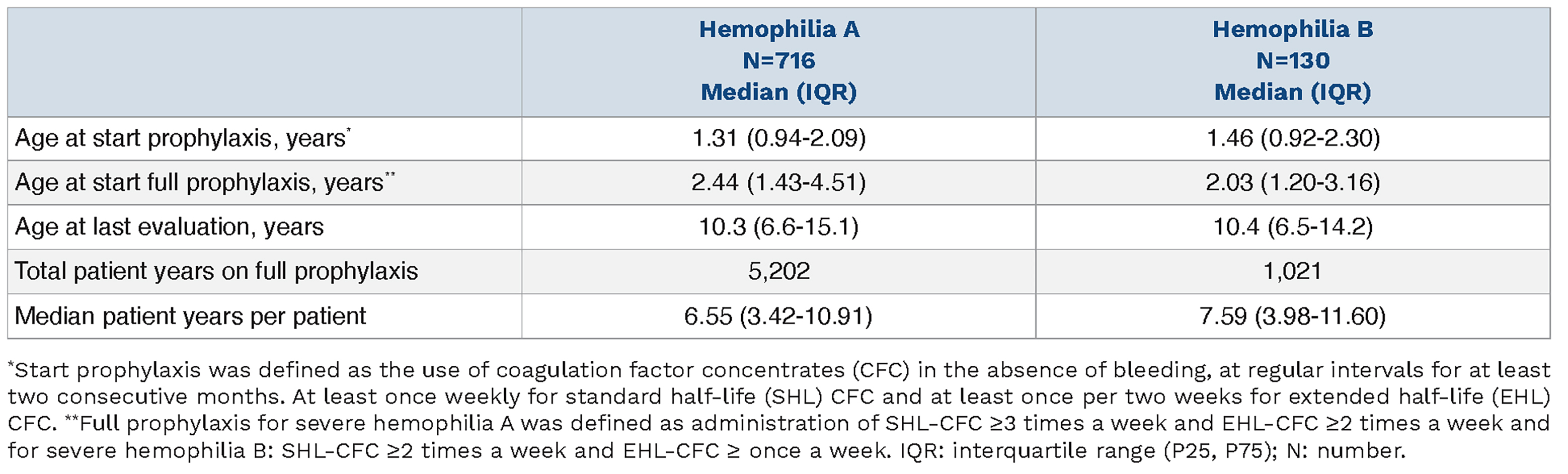 Table 3.Bleeding rates in severe hemophilia A and B during full prophylaxis on extended half-life products according to age group.