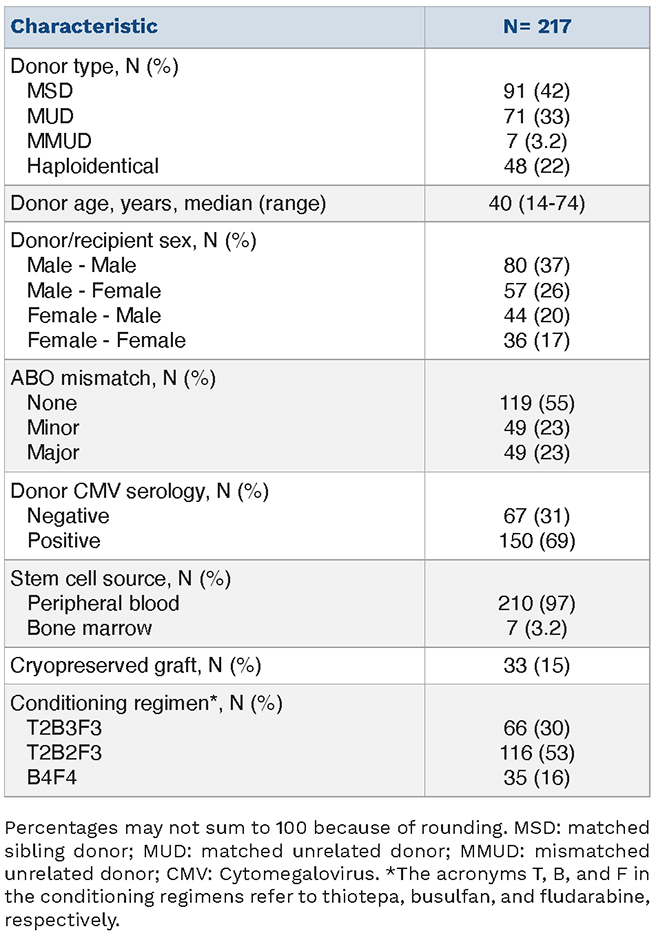 Table 4.Transplant outcomes of the entire cohort.
