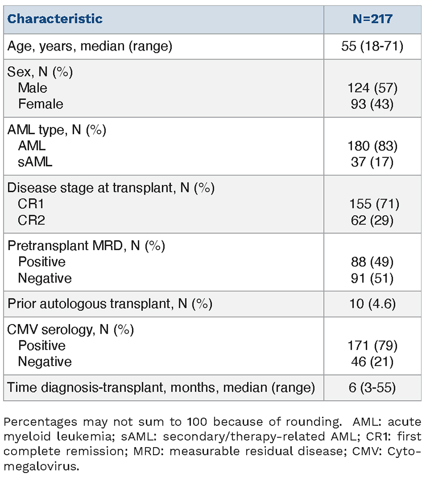 Table 5.Multivariate analysis of transplant outcomes for 217 acute myeloid leukemia hematopoietic cell transplantation patients.