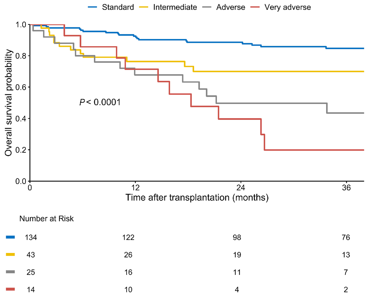 Figure 3.Probability of overall survival according to hematopoietic cell transplantation genetic risk categories.