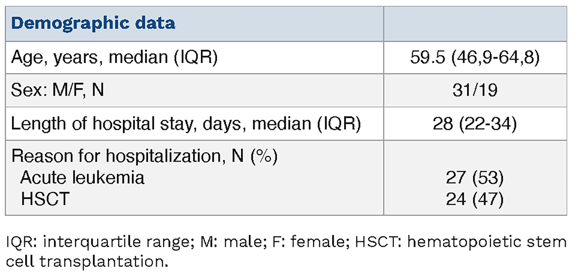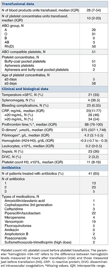 Table 1.Baseline characteristics of the transfused patients. Demographic data of the patients are summarized.