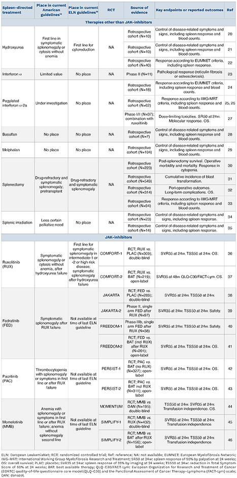 Table 1.Evidence for spleen-directed treatment in patients with transplant-ineligible myelofibrosis.