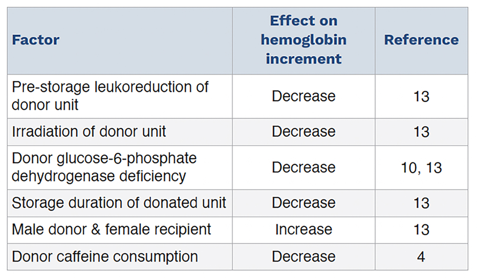 Table 1.Examples of factors affecting red blood cell storage quality.