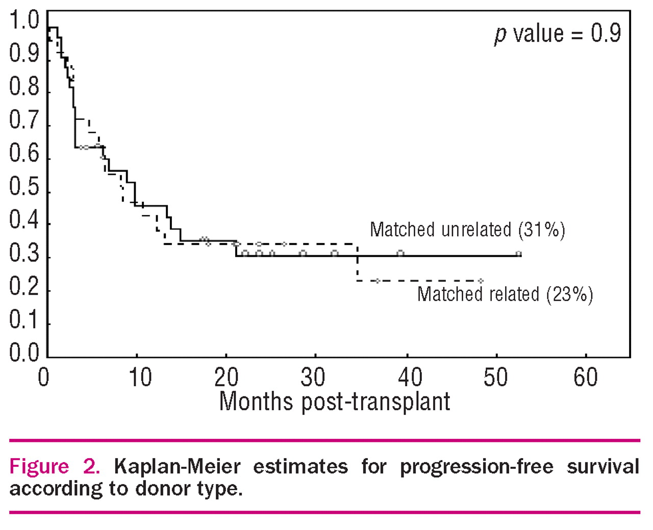 Figure 2.Kaplan-Meier estimates for progression-free survival according to donor type.