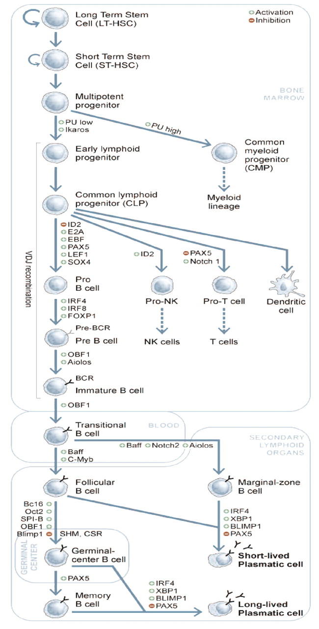 - Medina KL, Singh H. Genetic networks that regulate B lymphopoiesis. Curr Opin Hematol. 2005; 12(3):203-9. PubMedhttps://doi.org/10.1097/01.moh.0000160735.67596.a0Google Scholar