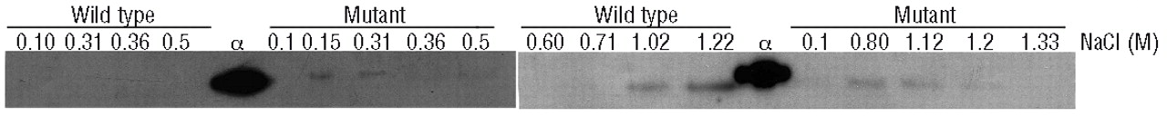 Figure 6.Western blot (SDS-PAGE) of fractions of wild-type and antithrombin Murcia recombinants eluted with NaCl from the heparin affinity chromatography