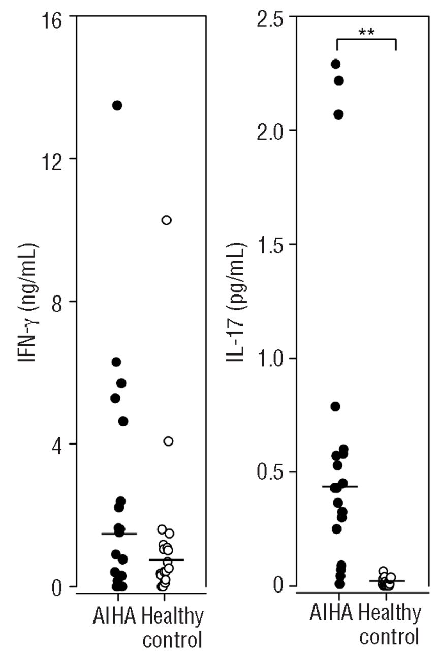 Interferon-γ and interleukin-17 levels in sera of patients with autoimmune hemolytic anemia and healthy control donors