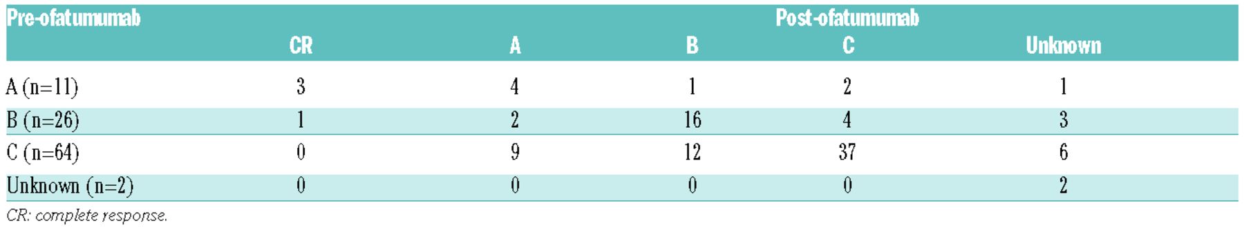 Table 1.Demographics, prior treatment, and patients’ characteristics at ofatumumab treatment.
