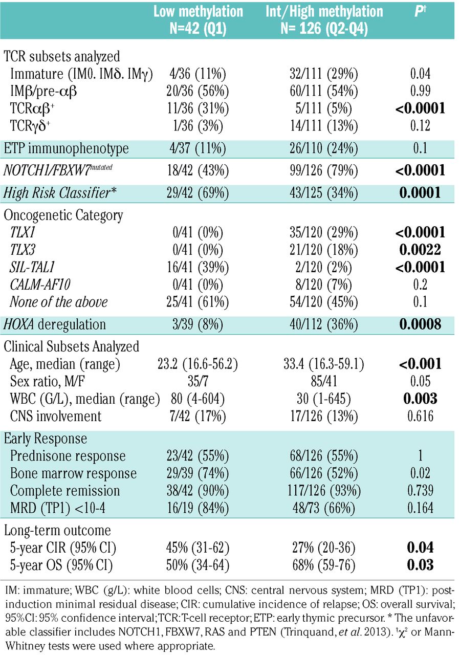 Low level of promoter methylation predicted a poor outcome subgroup of adult T-ALL