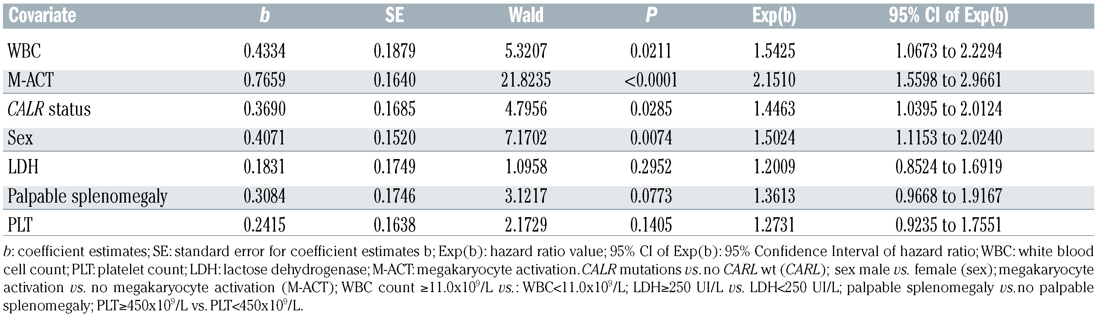 Table 3.Polycythemia vera cohort: progression-free survival multivariate analysis.