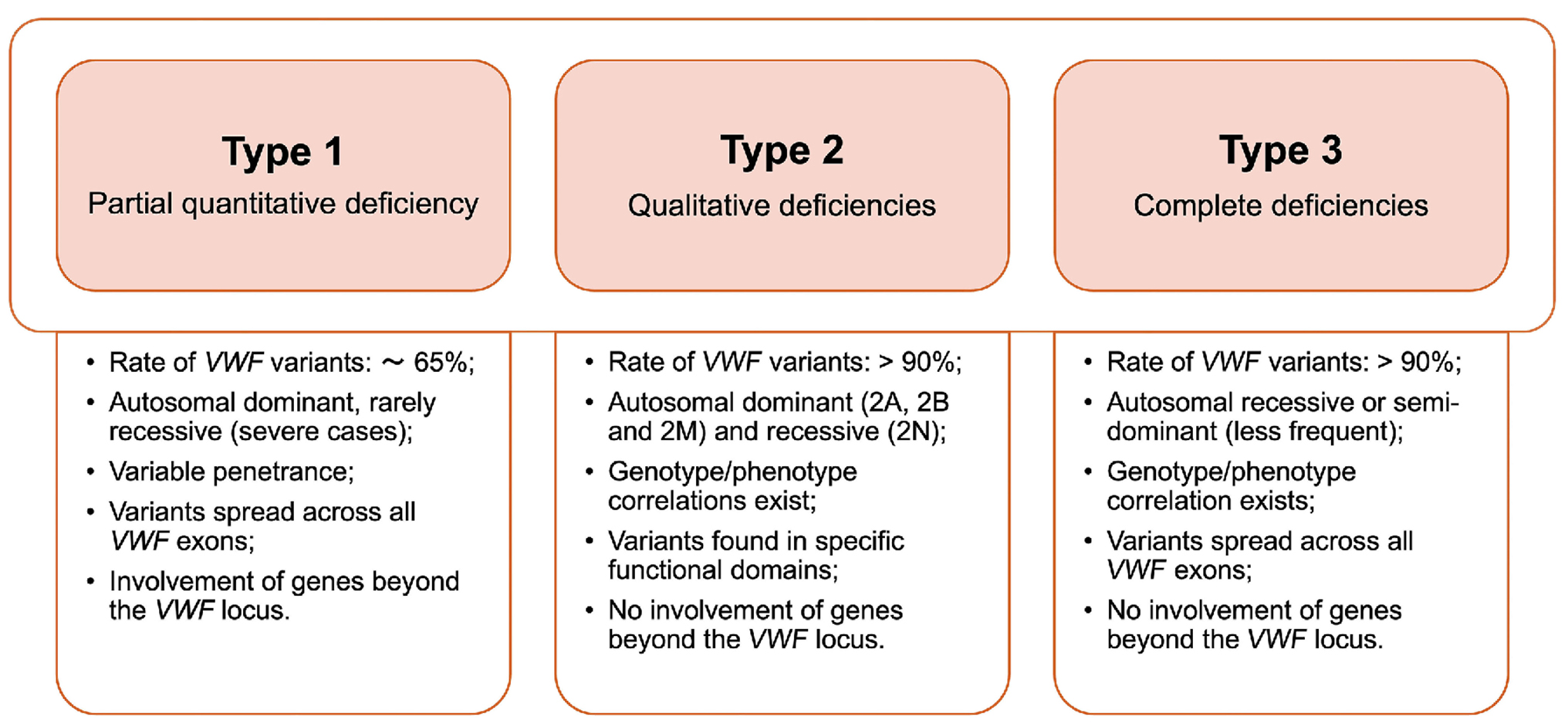 Figure 3.Genetic characteristics of various von Willebrand disease phenotypes.
