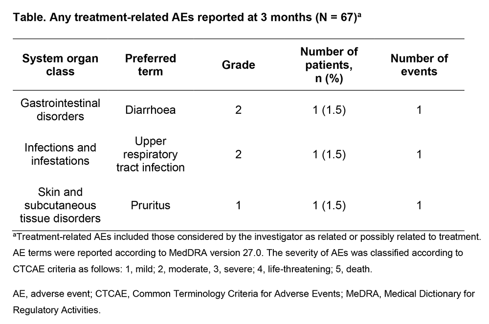 Patients with multiple myeloma (MM) are susceptible to secondary immunodeficiency (SID) owing to both their underlying disease and/or immunosuppressive therapy. HyMMy (NCT05879757) is an ongoing, prospective, non-interventional, observational study of hyaluronidase-facilitated subcutaneous immunoglobulin (fSCIG) 10% in adult patients with MM and SID across 25 centres in Europe. This interim analysis evaluated fSCIG 10% use and associated outcomes at 3-month follow up. Enrolled patients had a diagnosis of MM and met criteria for SID, defined as severe, recurrent or persistent infection(s) despite appropriate anti-infective treatment, and proven specific antibody failure or a serum IgG trough level of < 4 g/L (excluding paraprotein). The primary objective was to assess real-world infusion parameters of fSCIG 10%. Secondary objectives included healthcare resource utilization, MM disease status and adverse events (AEs). Statistical analysis was descriptive. As of 5 May 2025, 67 patients were enrolled; of these, 43 had completed 3 months of follow up. The mean (standard deviation [SD]) age was 64.9 (11.26) years and 53.7% were female. At baseline (enrolment), patients with MM had bone lesions (82.4%), anaemia (49.0%), renal insufficiency (27.5%) or hypercalcemia (13.7%). At baseline, patients received steroids (61.2%), anti-plasma cell monoclonal antibodies (49.3%), immunomodulatory drugs (46.3%), proteasome inhibitors (28.4%) and bispecific antibodies (14.9%). The median (interquartile range [IQR]) time from MM to SID diagnosis was 30 (8.0–67.0) months and the time from SID diagnosis to fSCIG 10% initiation was 2 (0.0–6.0) months. At baseline, 41.6% (57/137) of fSCIG 10% infusions were received every 4 weeks; this increased to 82.2% (97/118) of infusions at 3 months. The mean (SD) dose was 0.36 (0.225) g/kg at baseline and 0.37 (0.319) g/kg at 3 months. At baseline and at 3 months, median (IQR) total infusion volume was 200 (100–250) mL and 300 (210–400) mL, respectively; infusion rate was 133.3 (100–250) mL/h and 210.5 (165–224) mL/h; maximum infusion rate was 240 (240–250) mL/h and 300 (245–300) mL/h; infusion duration was 80 (60–120) minutes and 95 (80–110) minutes; and number of infusion sites was 2 (1–3) and 2.5 (2–3). The shorter infusion duration and fewer infusion sites at baseline were related potentially to dose ramp-up. At baseline and at 3 months, 91.1% (123/135) and 92.2% (129/119) of infusions were in the abdomen, respectively. At baseline, 90.5% (124/137) of infusions occurred in the hospital and 8.8% (12/137) at home; at 3 months, 66.1% (78/118) occurred in hospital and 33.9% (40/118) at home. No infusions were discontinued, slowed or interrupted. Four patients discontinued treatment owing to lack of effectiveness (n = 1) or because they enrolled in another study (n = 3). At 3 months, all treatment-related AEs were mild (1.5%) to moderate (3.0%) in severity, with no serious treatment-related AEs reported (Table). One patient died (2.2%) from an infection unrelated to treatment. This interim analysis shows the feasibility of using fSCIG 10% as a treatment option for patients with MM and SID in real-world setting, potentially offering the flexibility of home infusions with a favourable safety profile. Final study data from up to 12 months of follow-up are needed to confirm these findings.