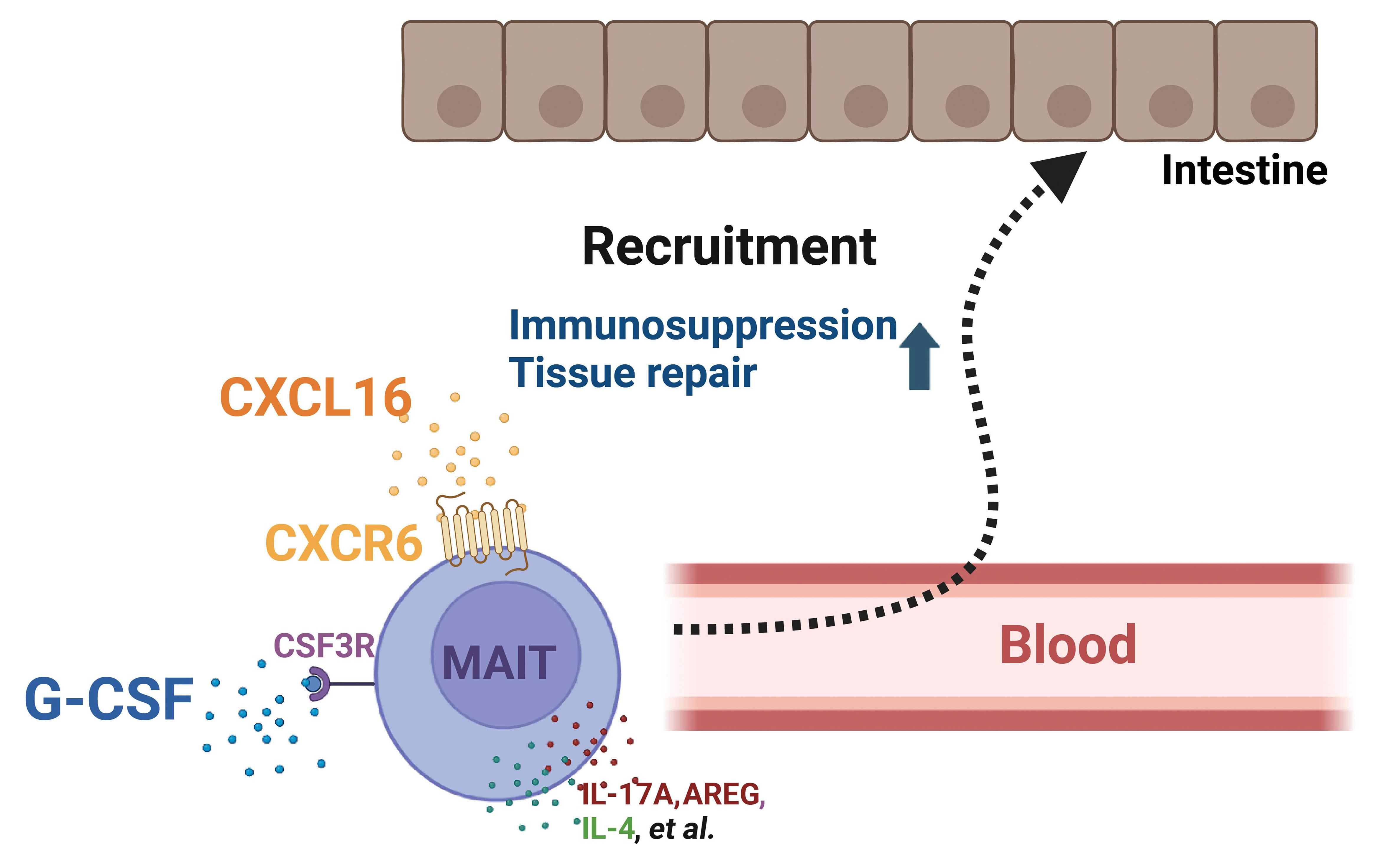 Mucosa-associated invariant T (MAIT) cells play an emerging role in immune responses after allogeneic hematopoietic stem-cell transplantation, particularly in the context of gastrointestinal graft-versus-host disease (GI-GvHD). In this study, Gao and colleagues used single-cell RNA sequencing to characterize the heterogeneity of MAIT cells within G-CSF–mobilized donor grafts and to define their functional states. They found distinct MAIT subsets with immunoregulatory and tissue-repair signatures, identifying CXCR6⁺ populations as strong predictors of GI-GVHD risk prior to transplantation.