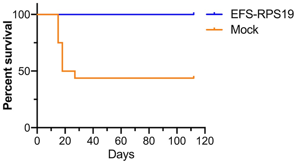 Twenty-five percent of patients with Diamond-Blackfan anemia (DBA) have mutations in a gene encoding ribosomal protein S19 (RPS19). The authors of this study developed a single gene, self-inactivating lentiviral vector containing human RPS19 cDNA. It was used for the successful treatment of Rps19-deficient DBA in a mouse model.
